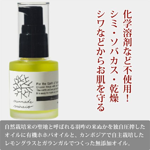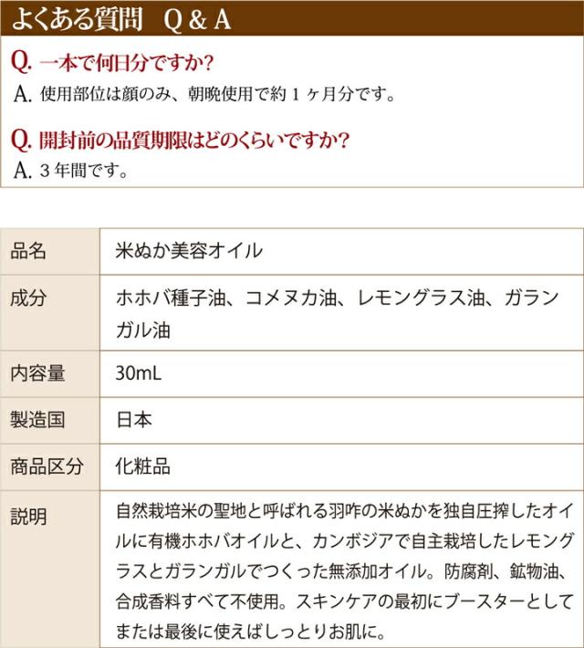 ・米ぬか美容オイル:ホホバ種子油、コメヌカ油、レモングラス油、