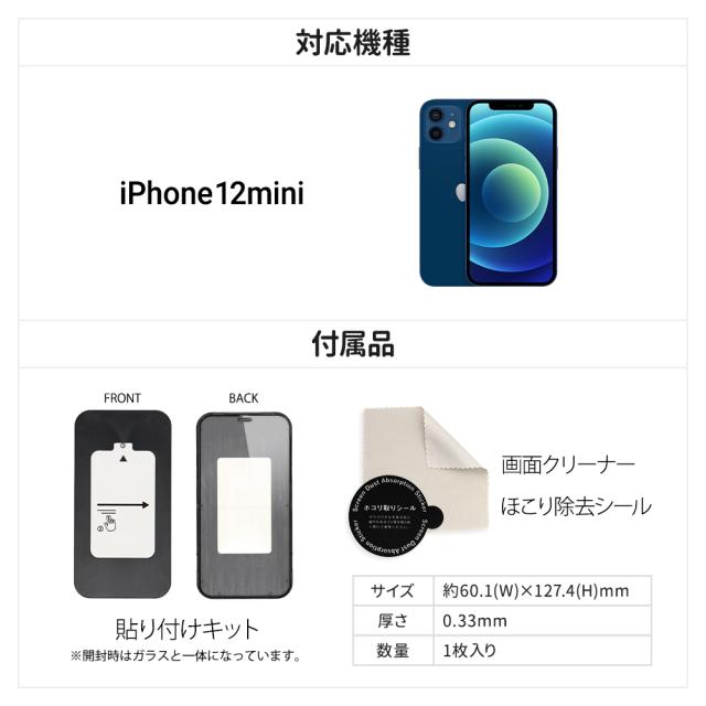 iPhone 12 mini (5.4インチ) 用 貼りミスゼロ かんたん3ステップ貼り付けキット付き 全面保護 強化ガラス マット【在庫限りセール】