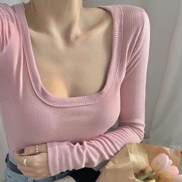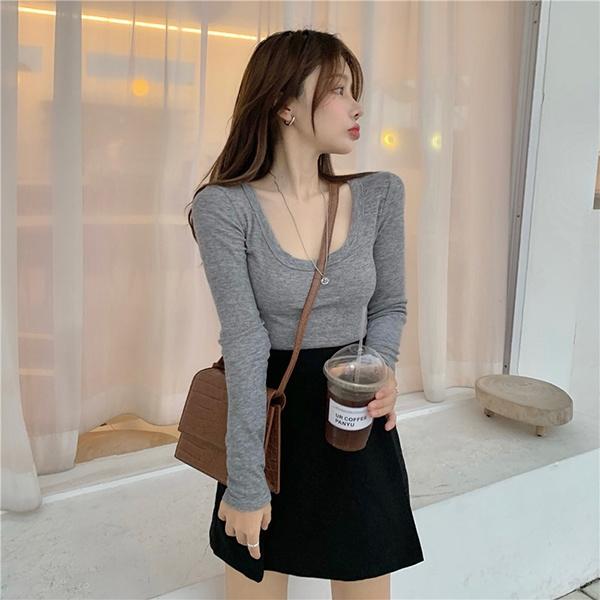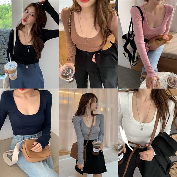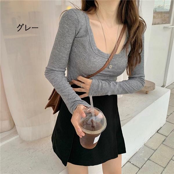 新作 胸元セクシートップス レディース きれいめ 長袖 シンプル セクシートップス ブラック レディースファッション 細身 おしゃれda902y6y6s3
