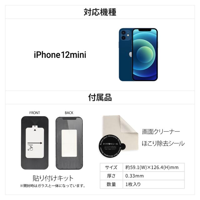 iPhone12mini (5.4インチ) 用 ガラス 画面保護 貼り付けキット付き 抗菌タイプ【在庫限りセール】