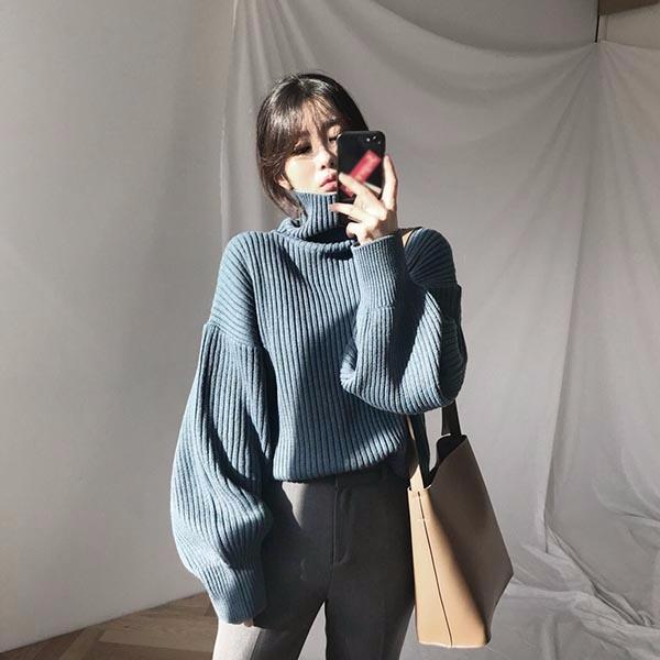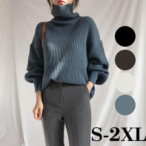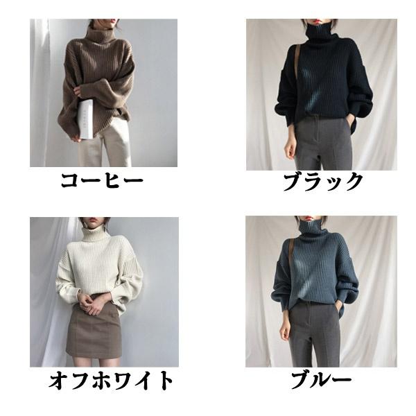 ハイネック ポワン 袖 バルーンスリーブ セーター レディース オーバーサイズ ニットセーター かわいい トップス 長袖 ブルー コーヒー オフホワイト ブラック きれいめ ニットトップス ゆるニット オフィスカジュアル レディース 無地 秋冬 ゆったり ef123ze
