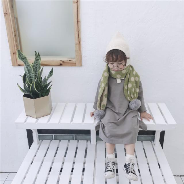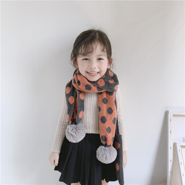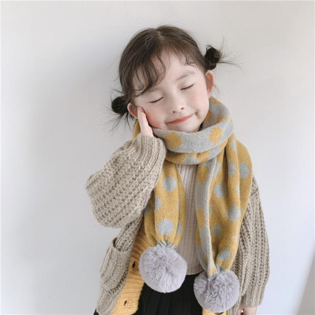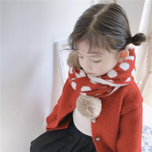 キッズ 女の子 マフラー ドット 水玉柄 スヌード 子供 子ども 防寒 ケーブルニット ボア ニット おしゃれ キッズ 女の子 男の子 男女兼用 ベビー ジュニア フリーサイズ 子供 防寒