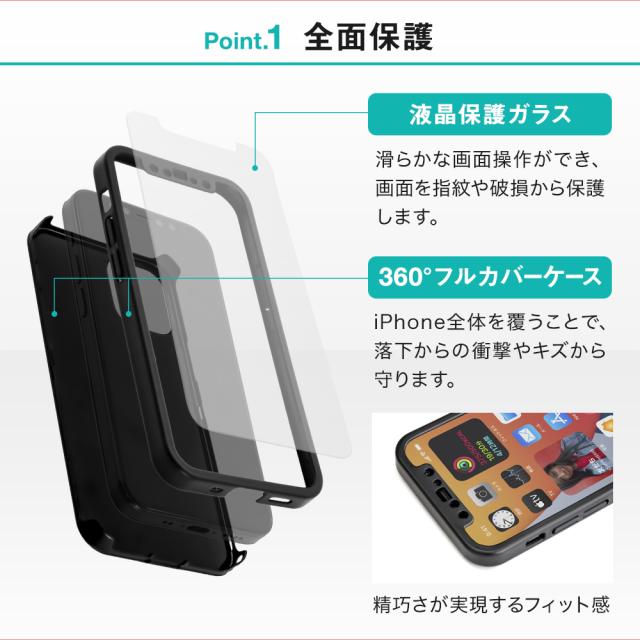 iPhone 12 mini (5.4インチ) 用 360°包み込んでキズから守る 画面保護マットガラス付きフルカバーハードケース【在庫限りセール】