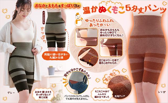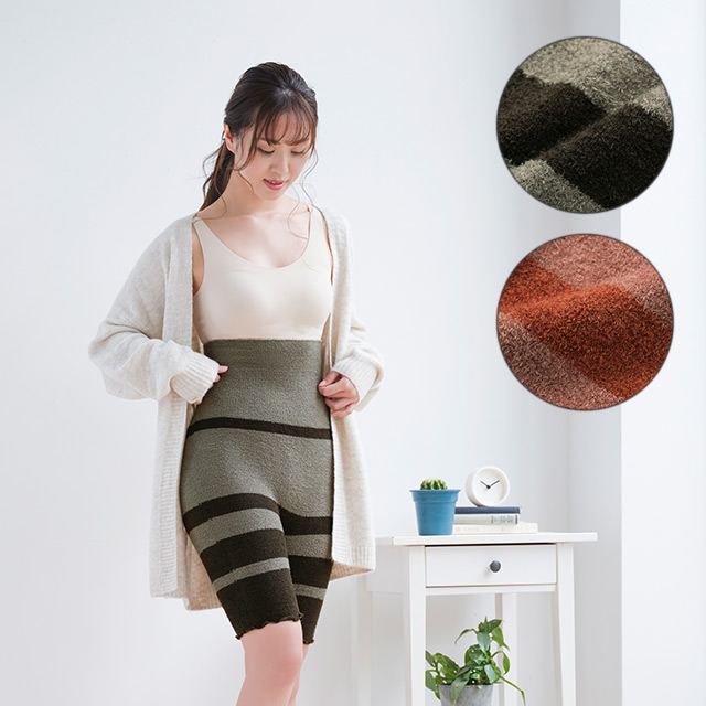 おなか太もも温かぬくもこ5分丈パンツ グレー・レンガ セルヴァン