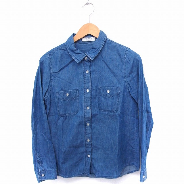 【中古】シネマクラブ CINEMACLUB シャツ ブラウス デニム ダンガリー 長袖 コットン 綿 M ブルー 青 /FT5 レディース