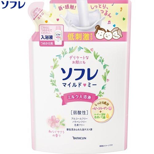 ソフレ マイルドミー ミルク入浴剤 和らぐサクラの香り つめかえ/詰め替え 600mL *バスクリン ソフレ/低刺激/ミルク入浴液/保湿成分ベビーコラーゲンオーガニック認証ホホバ油/赤ちゃんからシニアまで/デリケートなお肌の方に/新生児入浴テスト済/弱酸性