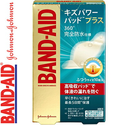 バンドエイド キズパワーパッドプラス ふつうサイズ 10枚 *JNTLコンシューマーヘルス/切り傷、すり傷、かき傷、あかぎれ、さかむけ、靴ずれ等の創傷及び軽度の熱傷(やけど)の「治癒の促進」、「痛みの軽減」、「湿潤環境の維持」、「保護」
