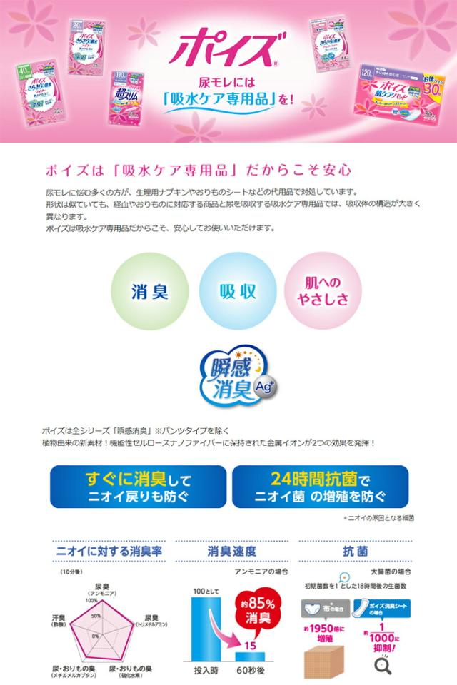 ポイズ さらさら吸水 パンティライナー 吸収量:3cc スウィートフローラルの香り 44枚 【 日本製紙 ポイズ 】 [ 失禁パッド 吸水パッド 尿もれパッド 尿漏れパッド ナプキン ]