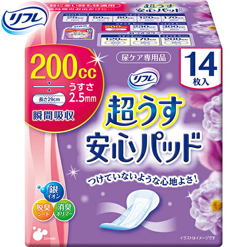 リフレ 超うす安心パッド 特に多い時も快適用 200cc 14枚 *リブドゥ/咳・クシャミの時/夜用ナプキンを代用している方に/オシャレしてお出かけしたい時/つけていないような心地よさ!素肌にやさしい/つけはずし簡単!下着にぴったりずれないテープ