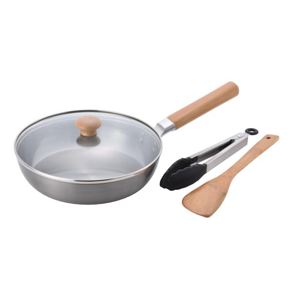 ●使い込むほどに油がなじむ、永く育てるフライパンとトング、ターナーのセットです。