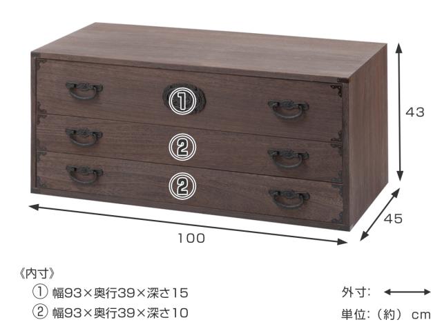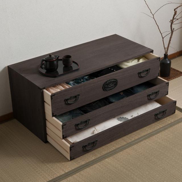 焼桐タンス 3段 民芸調 桐箪笥 日本製 幅100cm ( 桐タンス タンス たんす 箪笥 桐たんす 完成品 チェスト 桐 和箪笥 着物収納 国産 着物 折らない 収納 衣類収納 たとう紙 )