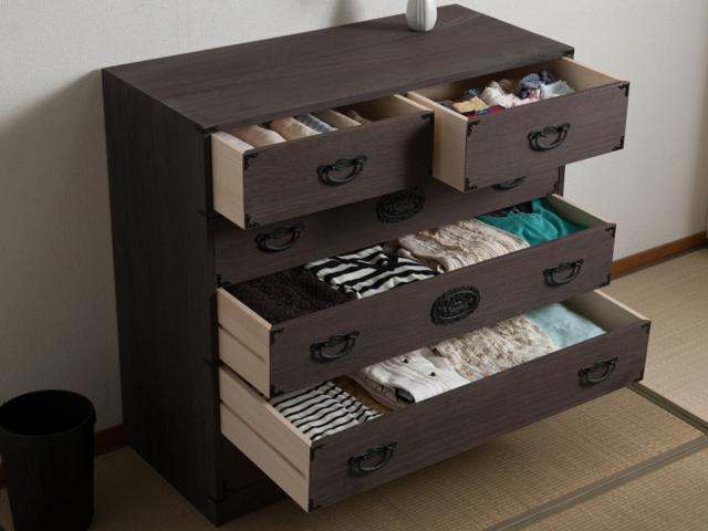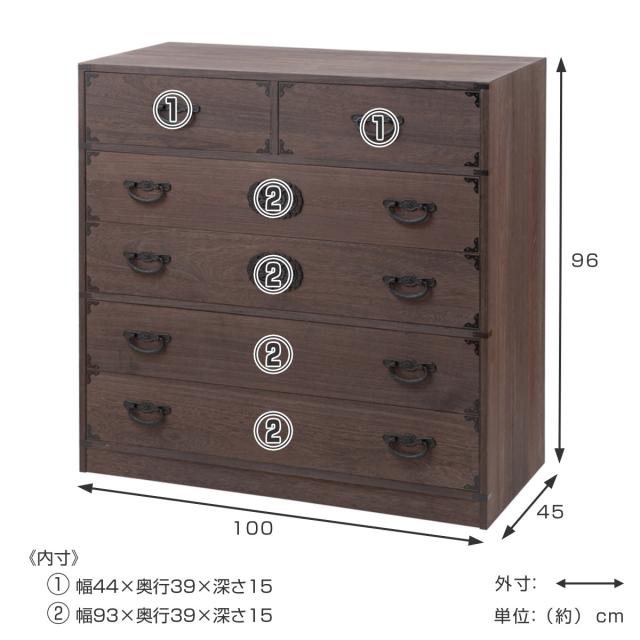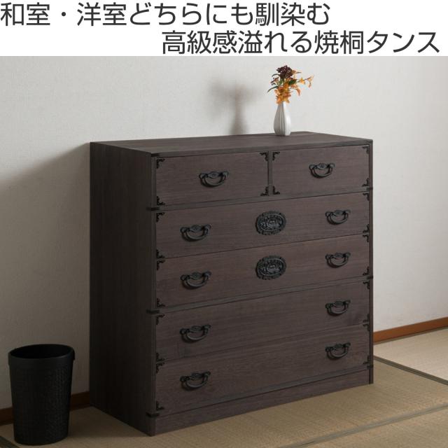 焼桐タンス 5段 民芸調 桐箪笥 日本製 幅100cm ( 桐タンス タンス たんす 箪笥 桐たんす 完成品 チェスト 桐 和箪笥 着物収納 国産 着物 折らない 収納 衣類収納 たとう紙 )