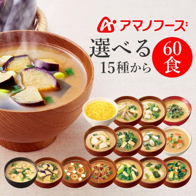 母の日 アマノフーズ フリーズドライ 味噌汁 15種から 選べる 6種60食 詰め合わせ セット 【 送料無料 沖縄以外】 インスタント 食品 スープ 即席味噌汁 インスタントスープ 常温保存 和食 洋食 備蓄 防災 非常食 2026 新生活 内祝い ギフト