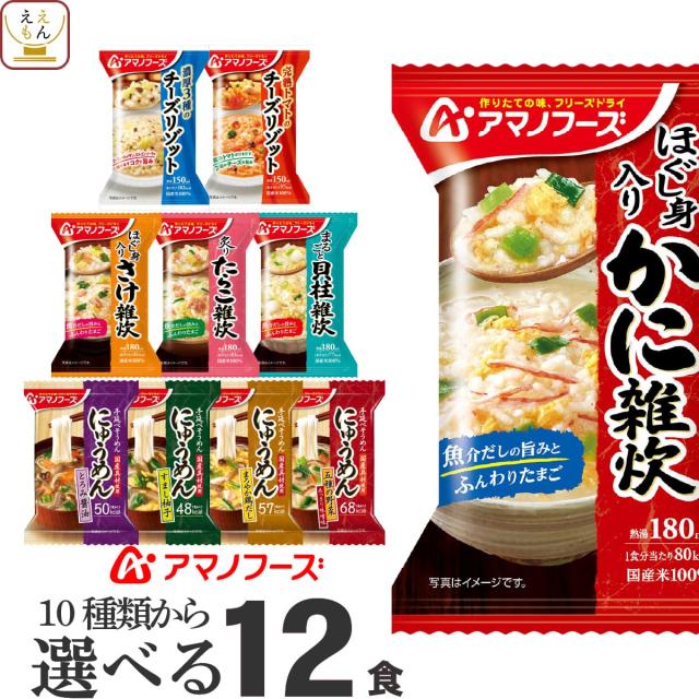 母の日 アマノフーズ フリーズドライ 選べる 雑炊 にゅうめん リゾット 6種12食 詰め合わせ セット 【 送料無料 北海道沖縄以外】 インスタント 食品 惣菜 おかず ご飯 プレゼント 常温保存 備蓄 非常食 保存食 2026 新生活 内祝い ギフト