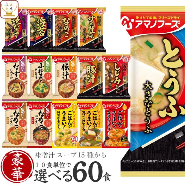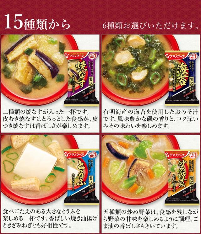 母の日 アマノフーズ フリーズドライ 味噌汁 スープ 豪華 15種類から 選べる 6種30食 詰め合わせ セット 【 送料無料 沖縄以外】 インスタント 食品 即席味噌汁 即席スープ プレゼント 備蓄 常温保存 非常食 保存食 2026 新生活 内祝い ギフト