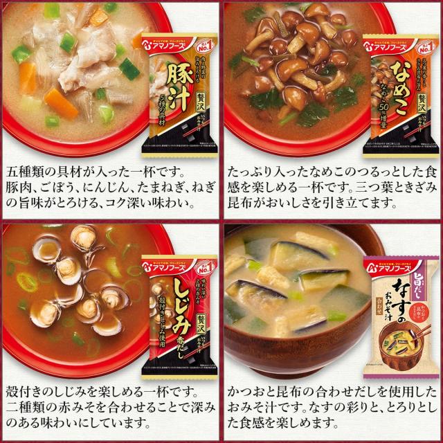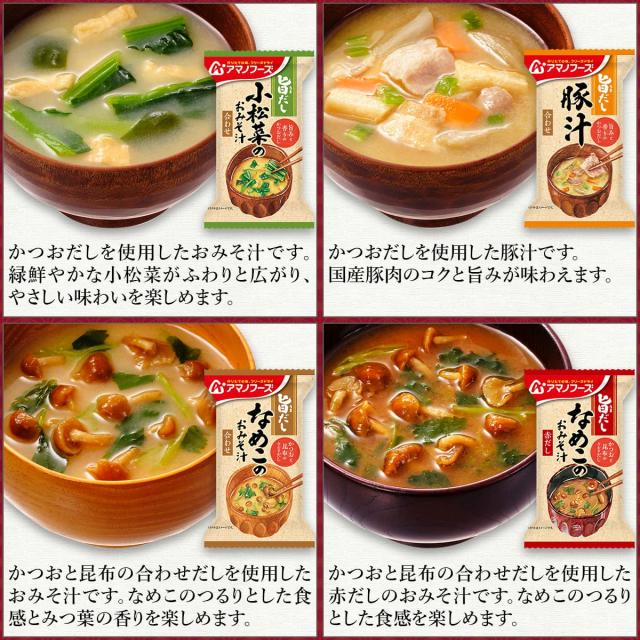 アマノフーズ味噌汁 具材にこだわった いつものおみそ汁 贅沢 と自然な旨みとやさしい味わい 旨だし お味噌汁 素材本来の旨みを引き出した Theうまみスープ から 組み合わせ 自由。