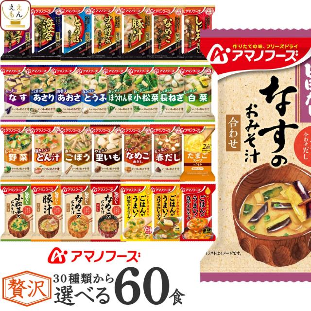 母の日 アマノフーズ フリーズドライ 味噌汁 スープ 贅沢 30種類から 選べる 6種60食 詰め合わせ セット 【 送料無料 沖縄以外】 インスタント 食品 即席味噌汁 即席スープ プレゼント 備蓄 常温保存 非常食 保存食 2026 新生活 内祝い ギフト