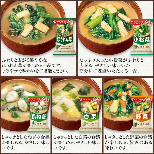 アマノフーズ味噌汁 毎日食べたくなる いつものおみそ汁 具材にこだわった いつものおみそ汁 贅沢 自然な旨みとやさしい味わい 旨だし お味噌汁 素材の旨みを引き出した Theうまみスープ から 組み合わせ 自由。