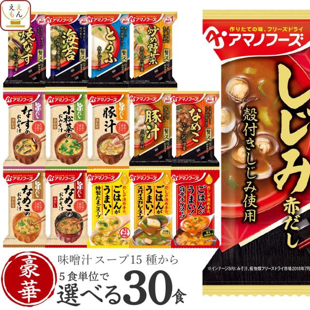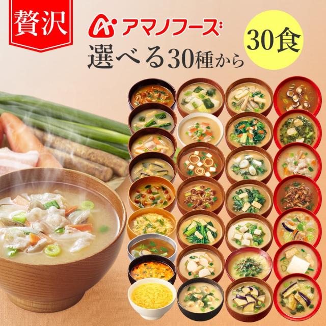 母の日 アマノフーズ フリーズドライ 味噌汁 スープ 贅沢 30種類から 選べる 6種30食 詰め合わせ セット 【 送料無料 沖縄以外】 インスタント 食品 即席味噌汁 即席スープ プレゼント 備蓄 常温保存 非常食 保存食 2026 新生活 内祝い ギフト