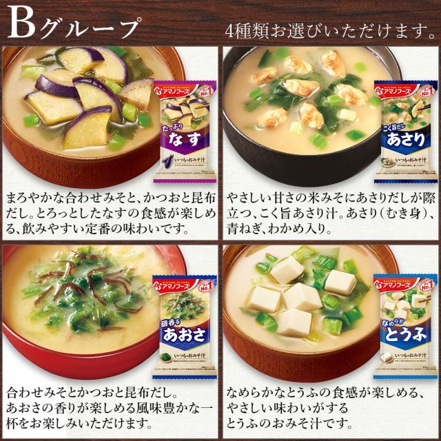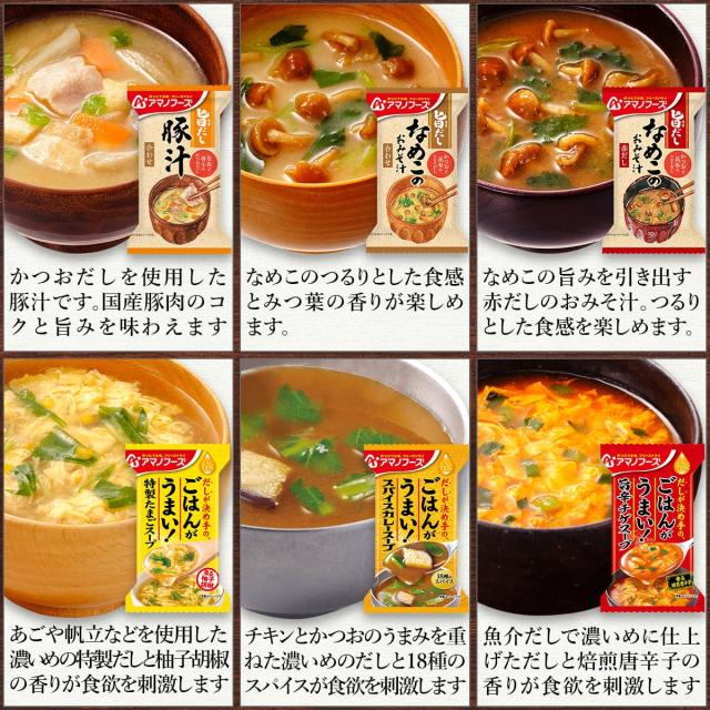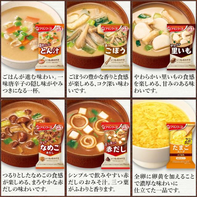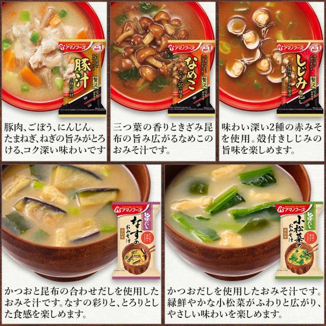 アマノフーズ味噌汁 毎日食べたくなる いつものおみそ汁 具材にこだわった いつものおみそ汁 贅沢 自然な旨みとやさしい味わい 旨だし お味噌汁 素材の旨みを引き出した Theうまみスープ から 組み合わせ 自由。
