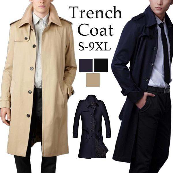 【サイズ有S〜2XL/3XL/4XL/5XL/6XL/7XL/8XL/9XL】秋コート トレンチコート メンズ メンズコート ビジネスコート アウター ロング 細身 スリム 冬 服 ベージュ ブラック 無地 春コート 長袖 大きいサイズ ビター系 全3色dg035x1