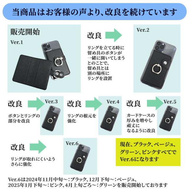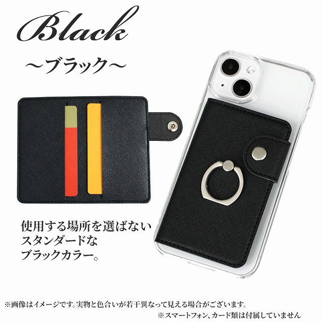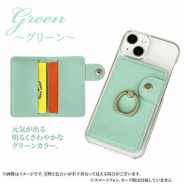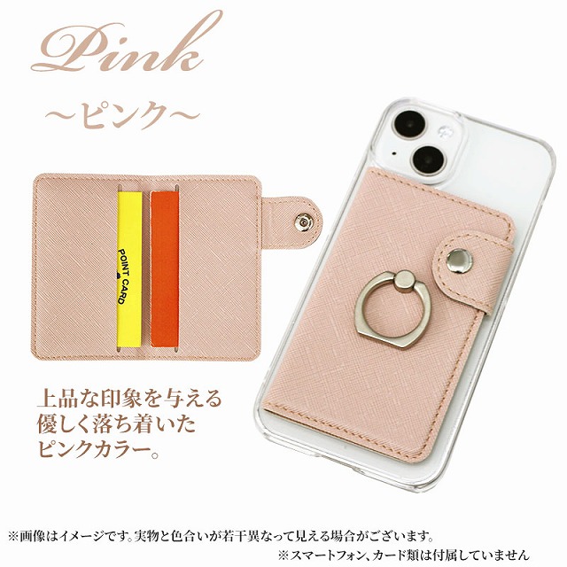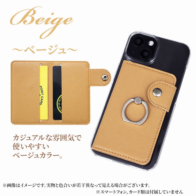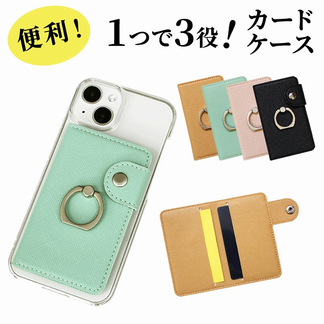 スマホ カードケース 貼り付け リング付き 背面収納 ブラック スマホリング スマホスタンド スタンド機能付き 落下防止 スナップボタン式 カード入れ カード収納 カードホルダー マグネットなし 磁石なし 送料無料 即納 ベージュ グリーン ピンク