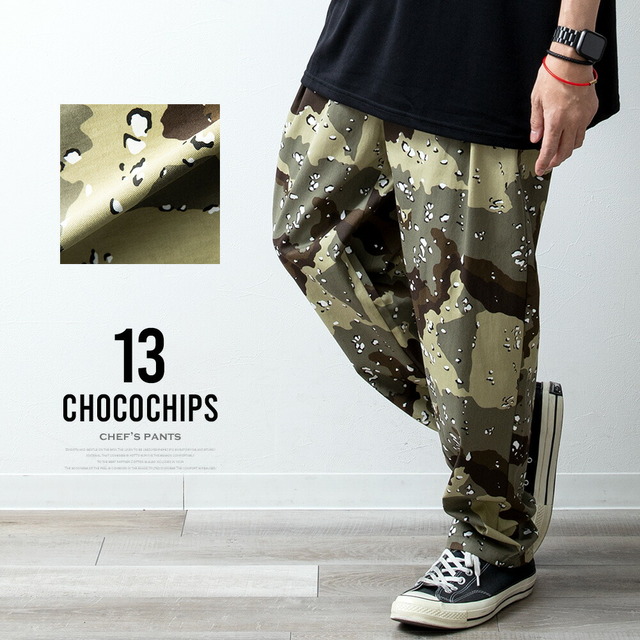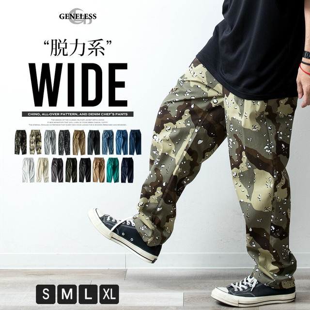 ワイドパンツ メンズ シェフパンツ ゆったり ボトムス ワイド パンツ ルーズ 秋冬 メンズパンツ ストリート デニム カモ チャコール ゴムウエスト チョコチップス