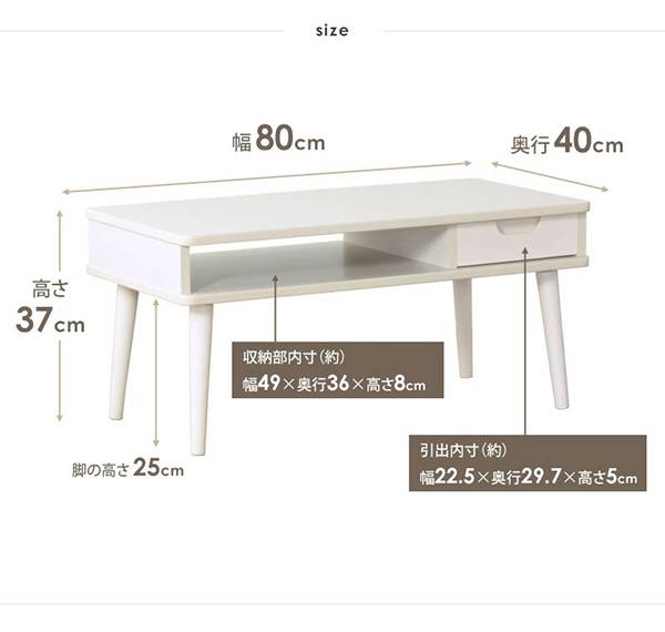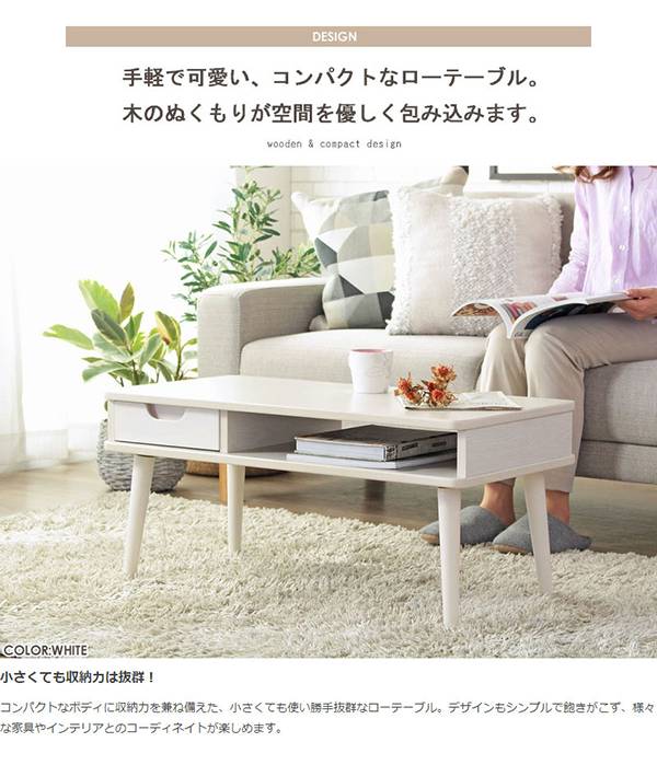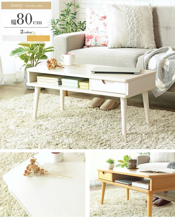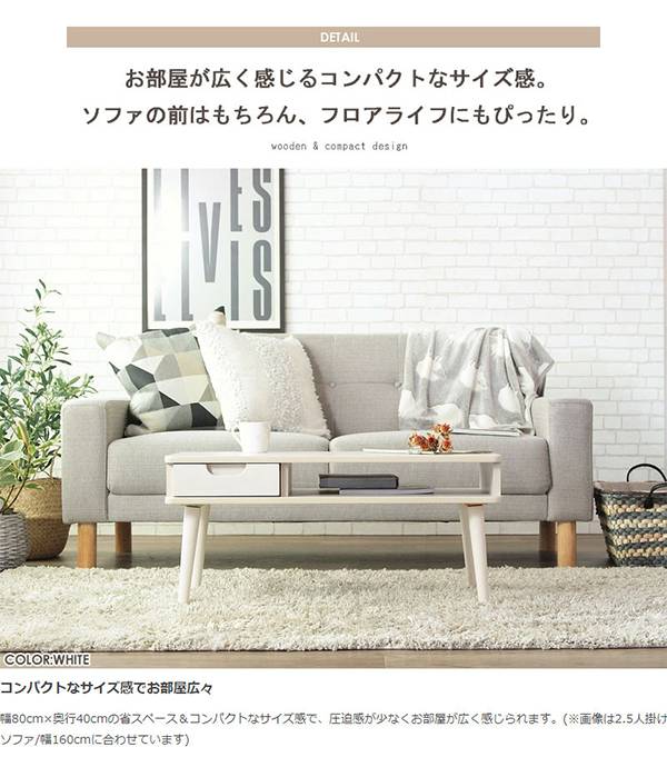 収納力を備えたコンパクトでおしゃれな木製ローテーブル ローテーブル 収納 引き出し 木製 幅80cm おしゃれ かわいい コンパクト スリム リビングテーブル センターテーブル コーヒーテーブル 北欧 ホワイト ブラウン ナチュラル 新生活