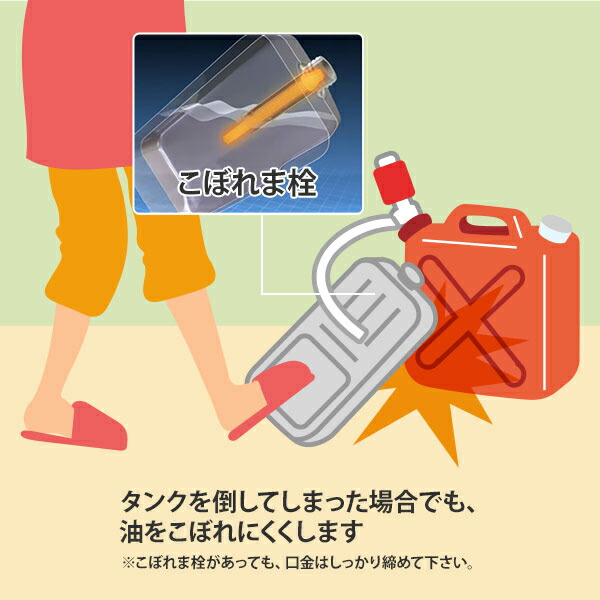 うっかり口金を締め忘れたり、タンクを倒してしまった場合でも、油をこぼれにくくします。 -