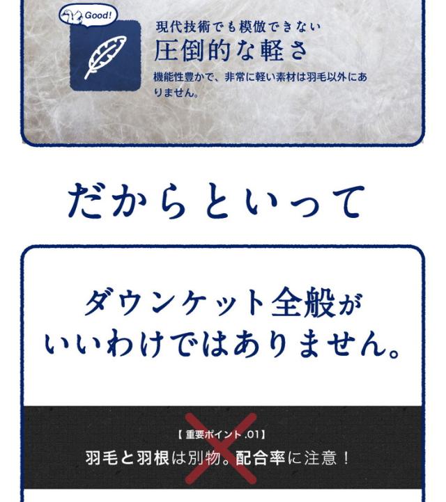 詰め物:ダウン85% フェザー15% DP350 (充填量:約0.3kg)