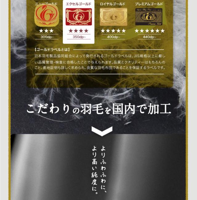85%ダウンの高品質なエクセルゴールドラベル羽毛を0.3kg使用したダウンケット(羽毛肌掛け布団)です。