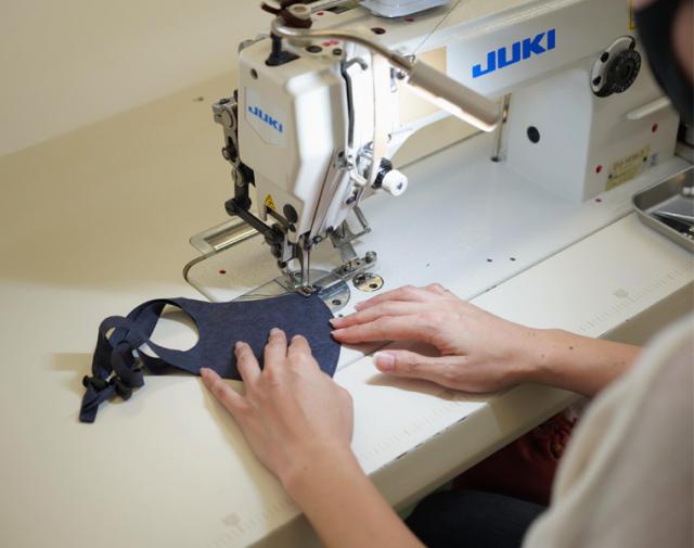 お風呂で洗えるマスクは日本製です。普段はレザー製品などの縫製を行っている職人さん達の手で一つ一つ作られています。