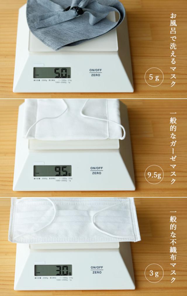 不織布には適わないものの、ガーゼと比較すると一目瞭然の軽さ。薄くて軽いのに生地はものすごく丈夫、日常使いで破れたりほつれたりすることもありません。