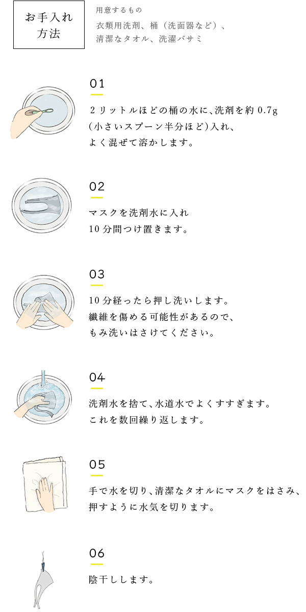 | 「おふろやさんがつくった、お風呂で洗えるマスク」は、お風呂のソムリエ(バスリエ)が作ったマスク きっかけは新型コロナウィルスの影響でマスク不足が続く中、イタリアから取り寄せていたバスローブの生地でマスクを作ってみたところ、マスク本来の機能はもちろん、この素材でしか生み出せないような素晴らしい発見がたくさんあったことです。 何よりお客様の「明日使えるマスクがない」という不安を解消し、一人でも多くの方にゆっくりとお風呂を楽しんでいただきたいと願い、私たちにしか出来ないマスク作りにチャレンジすることにしました。(お風呂のソムリエ:松永武) ※ご利用のモニター環境により色味に差異が生じる場合がございます。 |