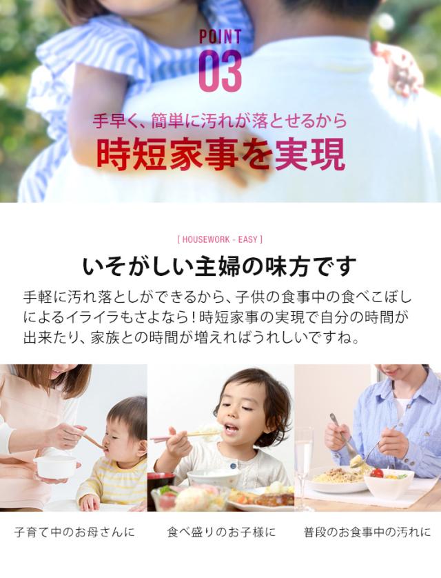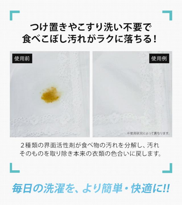 1.食べこぼしなどの汚れに直接塗ってください。 5分程度置くと、より効果的です。