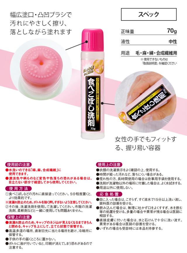 しみ抜き クリーニング屋さんのおしゃれ着にも使える 食べこぼし 洗剤 70g 業務用 洗濯 部分汚れ 染み抜き ポイント洗い ファンデーション 油じみ 汚れ 色柄物OK
