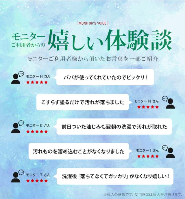 こすり洗い・つけ置き洗い不要で楽に落ちるから、素材を傷めにくくおしゃれ着にも使えます。