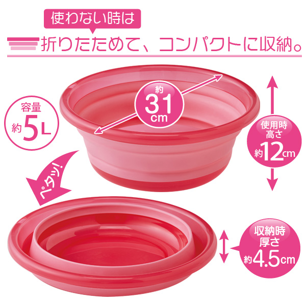 ■サイズ:(約)直径31×高さ12cm(使用時)、(約)直径31×高さ4.5cm(収納時)