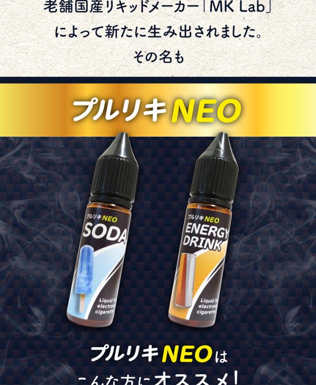 | プルリキNEO ENERGY DRINK (プルリキネオ エナジードリンク) | 数あるリキッドの中でも特に人気の高いエナジードリンク風味。 爽快感のある甘い味わいとキリっとした刺激が病みつきになります。 翼を授かる系のエナドリ味です! |