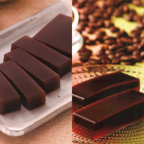 福井の冬に食べる水ようかんは、板状が主流です。プレーン、珈琲の2種類をお楽しみください。