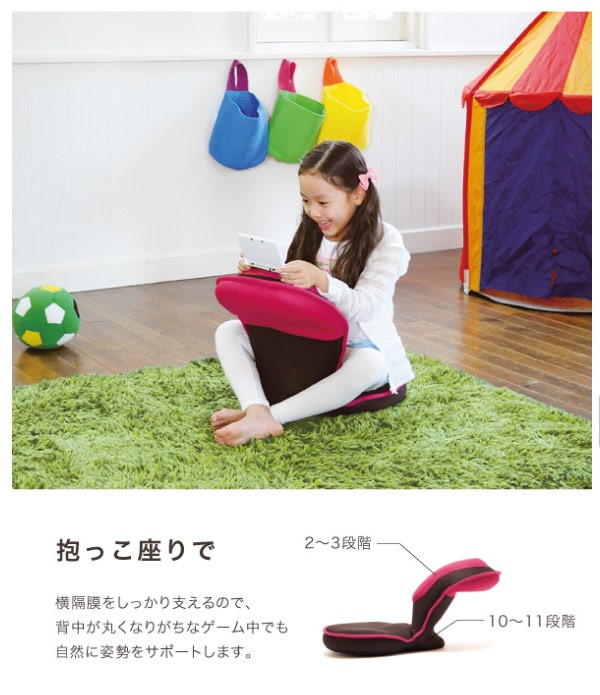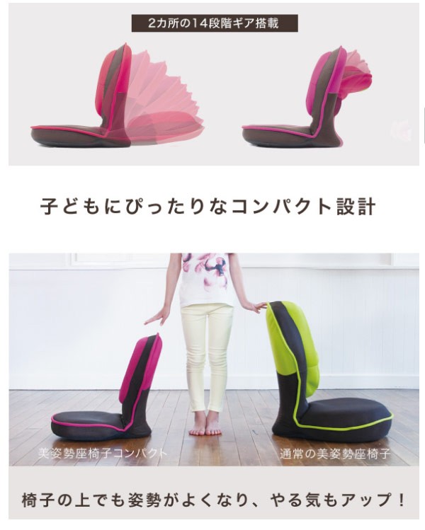 背筋がguuun美姿勢座椅子 コンパクト キッズ グリーン/ピンク/ブラウン 背筋がグーン ゲーミング座椅子 姿勢矯正 ゲーミングチェア 座椅子 ゲーム 子供用