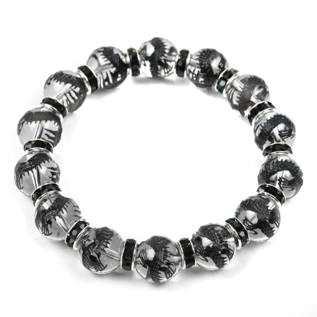 透き通った水晶に強さを見せつけるような輝かしい黒龍が彫られたストーンを使用したブレスレットです。