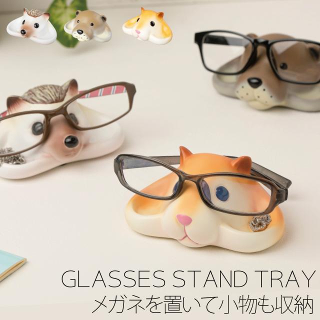 眼鏡スタンド メガネスタンド アニマル 動物 雑貨 グッズ かわいい ハリネズミ ハムスター カワウソ アクセサリートレイ アクセサリートレー 収納 Motif. メガネスタンドトレイ