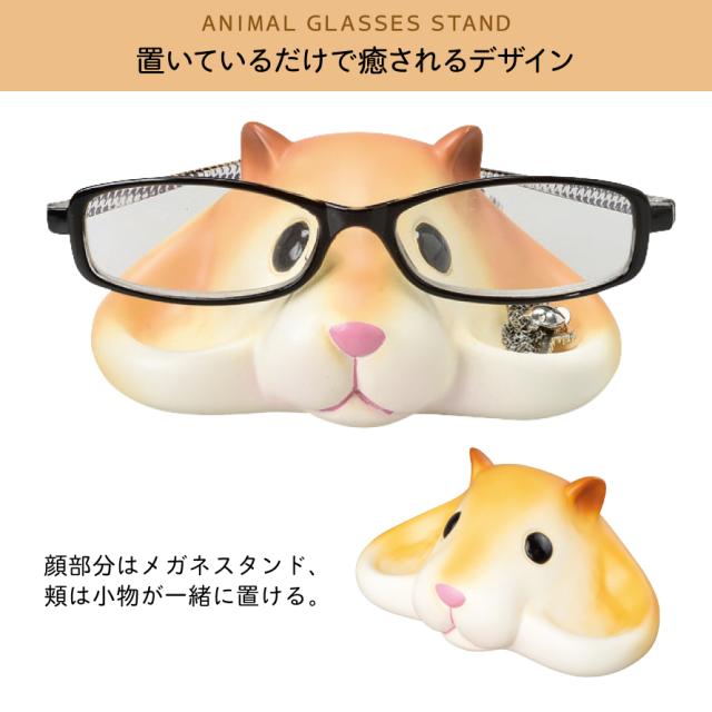 動物たちが可愛いメガネスタンドに。顔部分はメガネスタンドに、頬部分は小物トレイとしてアクセサリーなどを一緒に収納できます。