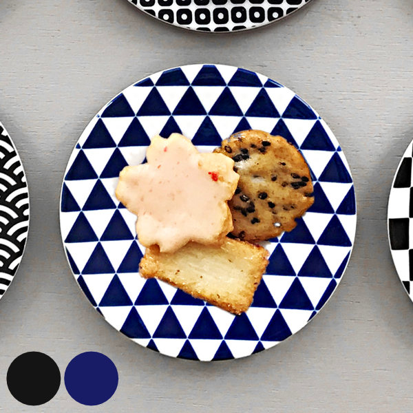 日本の伝統的な和柄が描かれた豆皿です。不思議と「和」すぎないモダンなデザインは漬物や醤油、和菓子はもちろん、洋菓子やおつまみなど様々なシーンで活躍します。