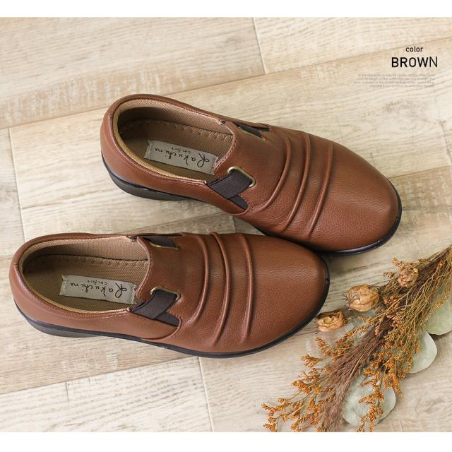 くしゅっとしたシャーリングデザインがおしゃれなカジュアルシューズです。