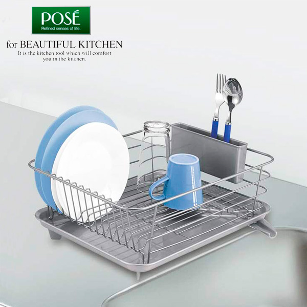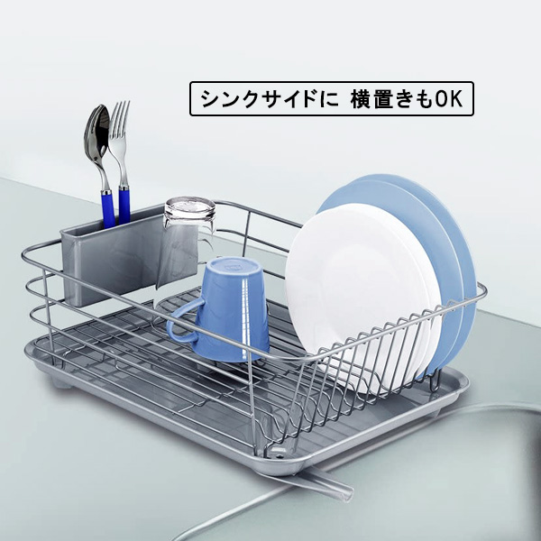 シンクサイドに縦置き・横置きできる食器の水切りカゴ。