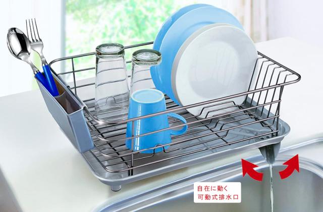 水切りかご ディッシュドレイナー 水切りラック 食器カゴ 水切り 食器置き シンク シルバー 縦置き 横置き バスケット ワイド 抗菌 可動式排水 ワイヤーかご ワイヤーカゴ 水切りカゴ ディッシュラック 水切りトレイ カトラリースタンド カトラリー入れ カトラリーポケット付き 水切りかご キッチン 台所 流し台 防さび加工 約 幅30 奥行40 高さ16 センチ cm 省スペース コンパクト スッキリ すっきり 片付く 大容量 食器洗い 皿置き 皿洗い シンク周り 水回り用品 キッチン用品 キッチングッズ 台所用品 台所グッズ 便利 おすすめ オススメ 水が流れる 自然排水 清潔 カビにくい 一人暮らし 新生活 4974908553080