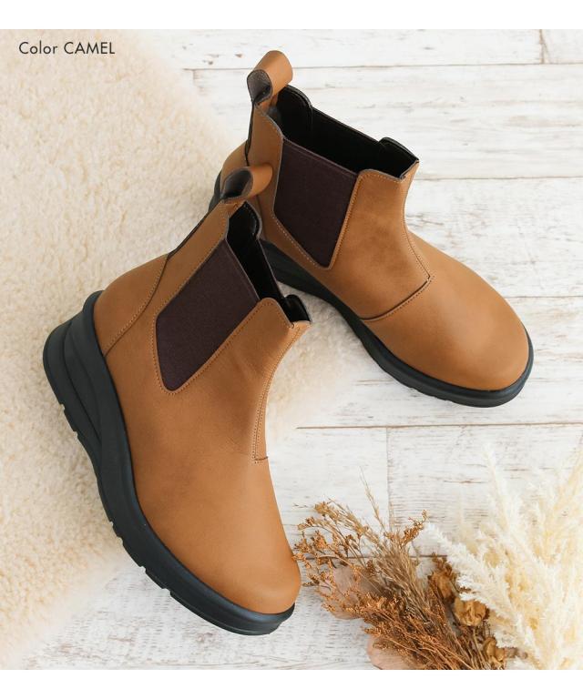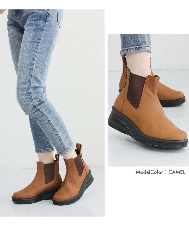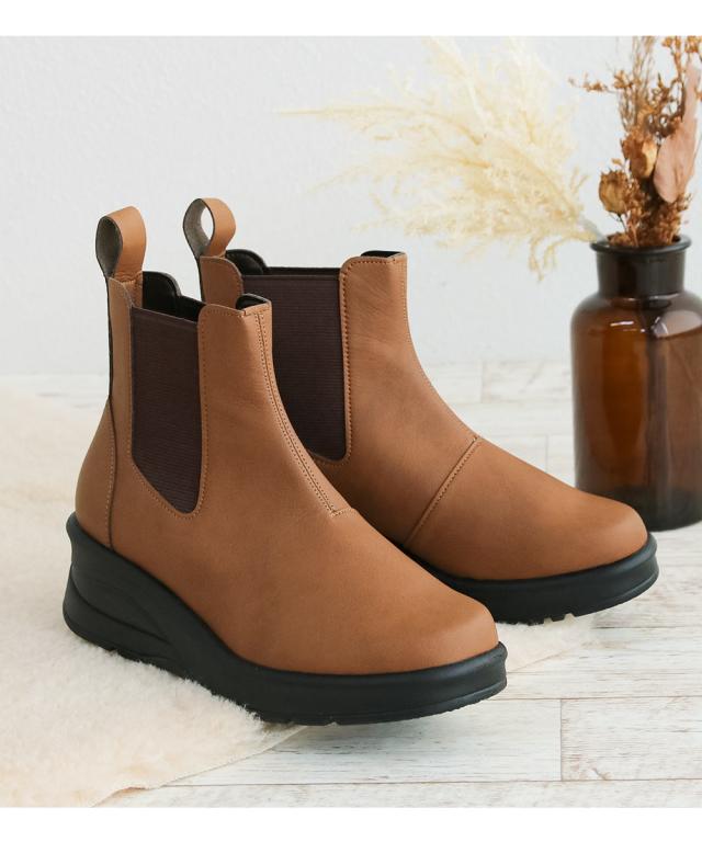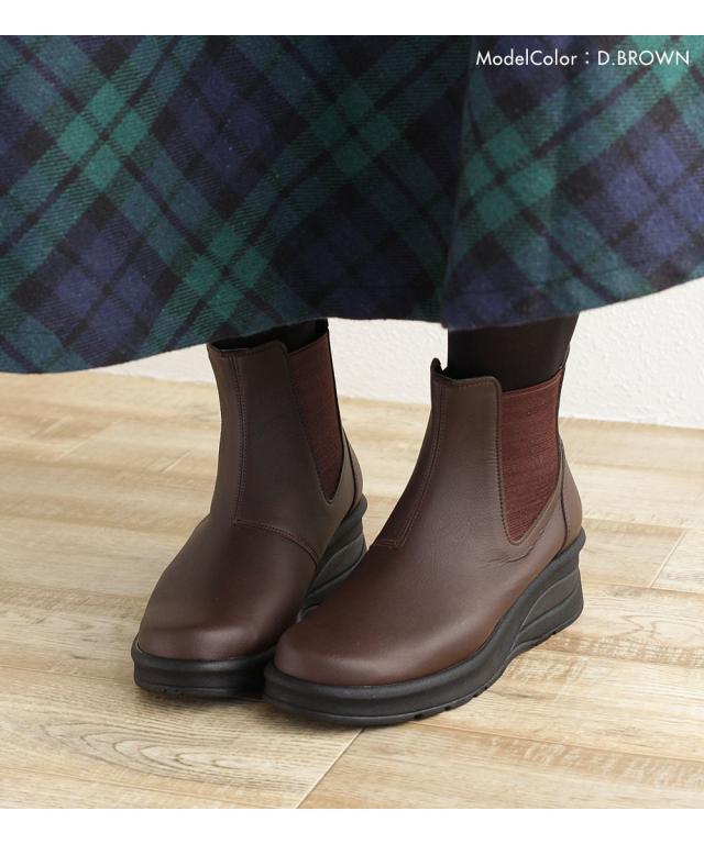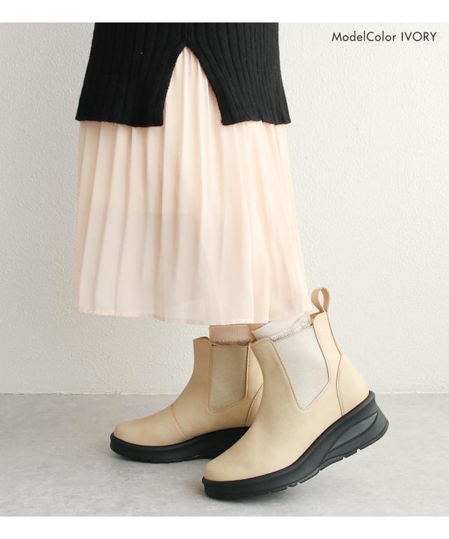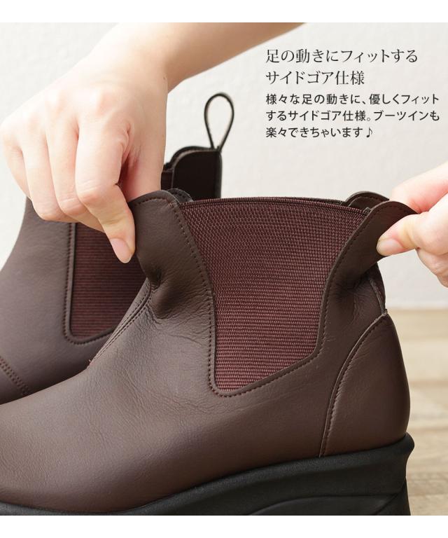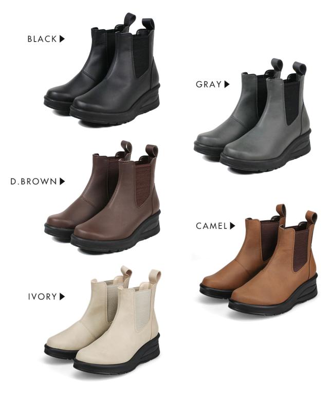 サイドゴアブーツ レディース ショートブーツ 黒 日本製 厚底 ウェッジソール 痛くない チェルシーブーツ ローヒール 痛くない 履きやすい 柔らかい 防寒 クッションインソール シンプル 婦人ブーツ ブラック グレー ダークブラウン キャメル アイボリー 69501