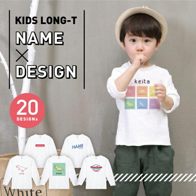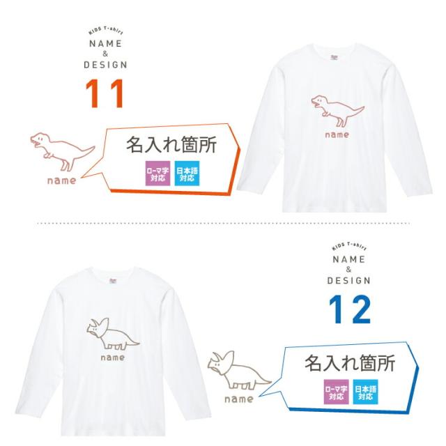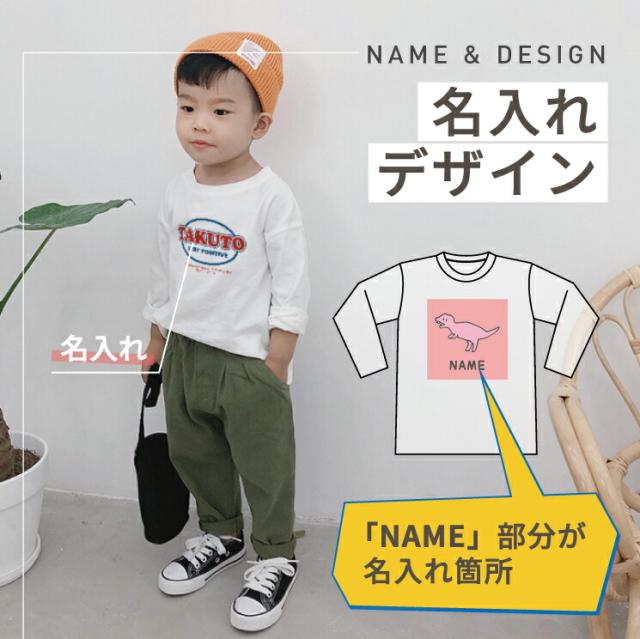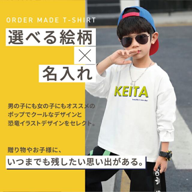 名入れ ロンT キッズ 親子 長袖 ペア Tシャツ 名前入り プレゼント ギフト お名前 ロングTシャツ 出産祝い ベビー 子供服 かわいい イニシャル シンプル 大人 お揃い リンクコーデ お祝い ロゴ クール 恐竜 きょうりゅう こどもの日 名入れアイテム